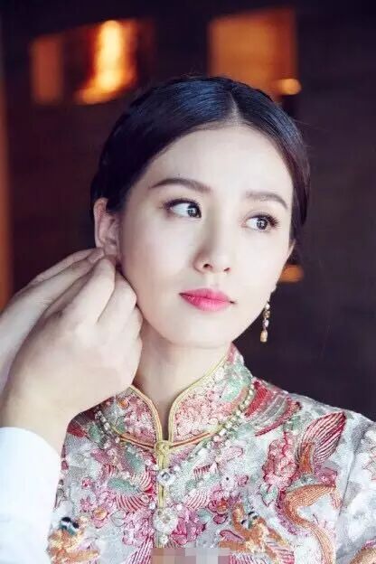 诗诗和吴奇隆选择中式礼服作为敬酒服,吴奇隆身着枣红色龙袍。诗诗则身穿象牙色底,浅赭色花卉纹样为主的中式礼服。