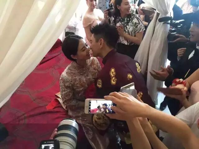 上午接亲时在众人的起哄下,吴奇隆附身亲吻刘诗诗,气氛甜蜜到爆。