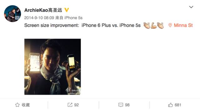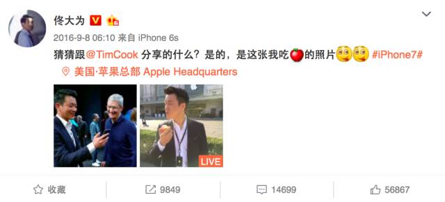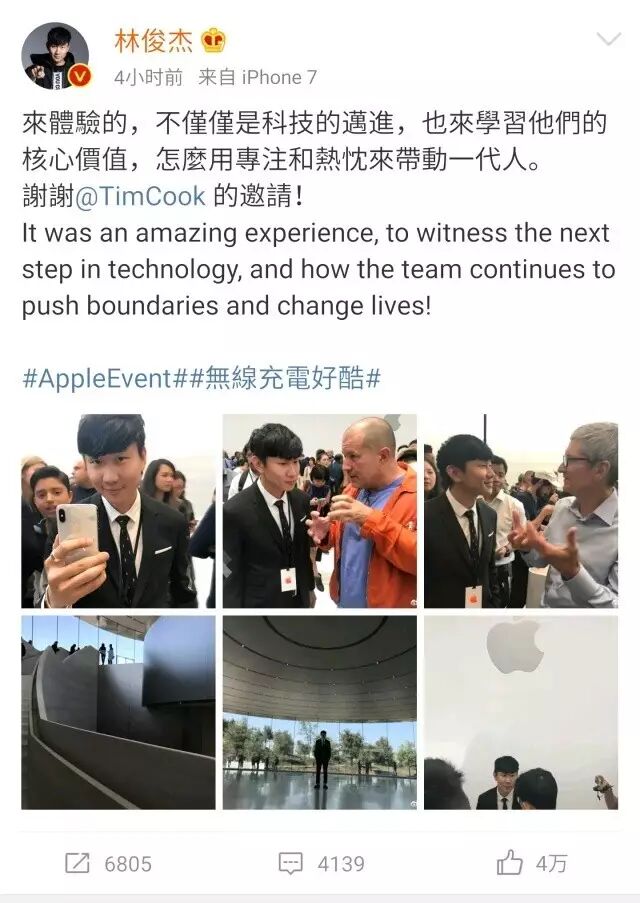 而后,他也发了关于苹果发布会的微博,感慨科技的进步,还附上了各种现场照。
