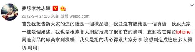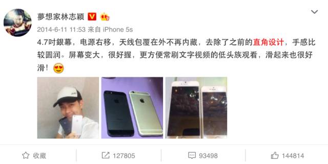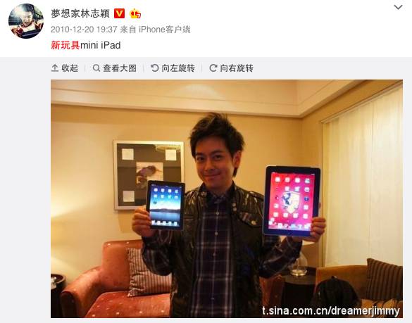 自2010年开始,林志颖就喜欢在微博晒出未上市的苹果新产品的照片。