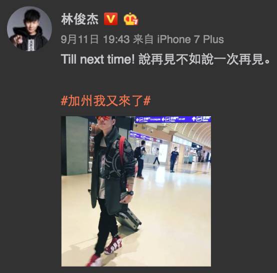 这个认真boy从出发前就很兴奋地发了微博,表示自己要去加州了!