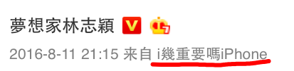 结果被网友骂装X,他又把微博尾巴改成了“i几重要吗”。