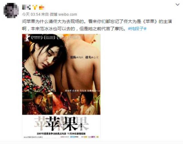 至于佟大为为什么会受邀,吃瓜群众开玩笑说:因为他演过《苹果》呀!