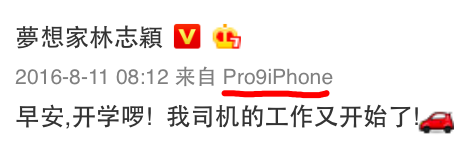 在八月份,他把微博尾巴改成“Pro7 iPhone”、"Pro9 iPhone"。