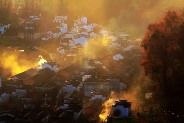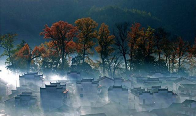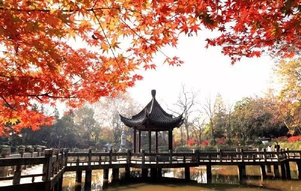 高大的红枫与白墙黑瓦马头墙掩映为一体,