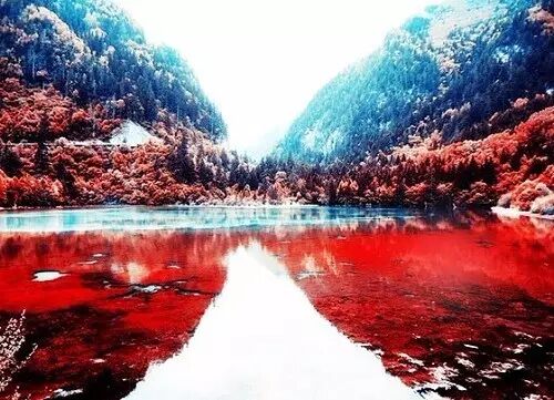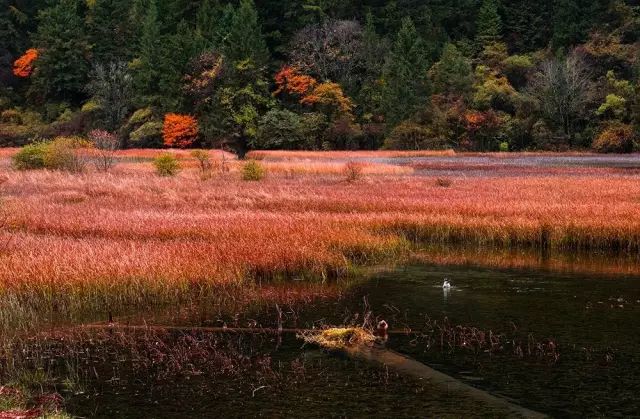 现在正值九寨沟金秋,多彩秋色漫山遍野。