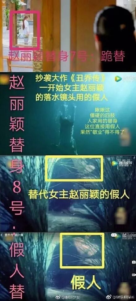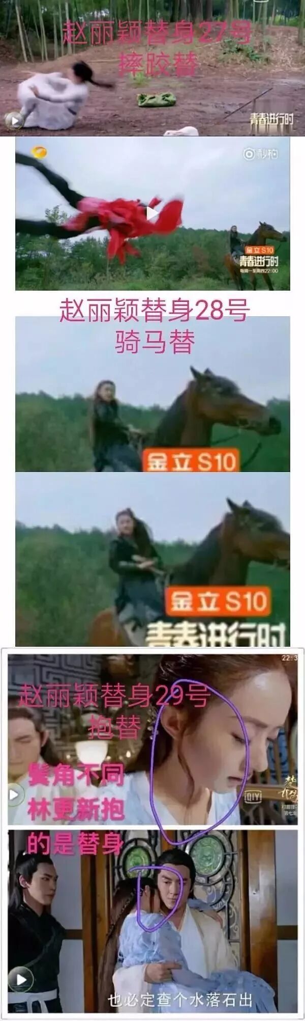但是没想到这么敬业的赵丽颖最近却被网友扒出了滥用替身,光《楚乔传》一部戏就用了32个替身……