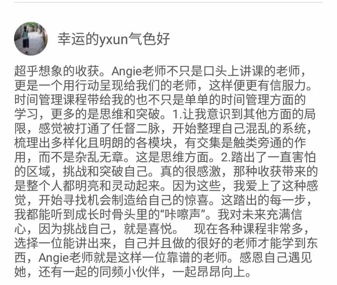 因为践行时间管理,2016年,她影响了超过100000名小伙伴,升级了她们的思维系统、拓宽了她们的认知边界。