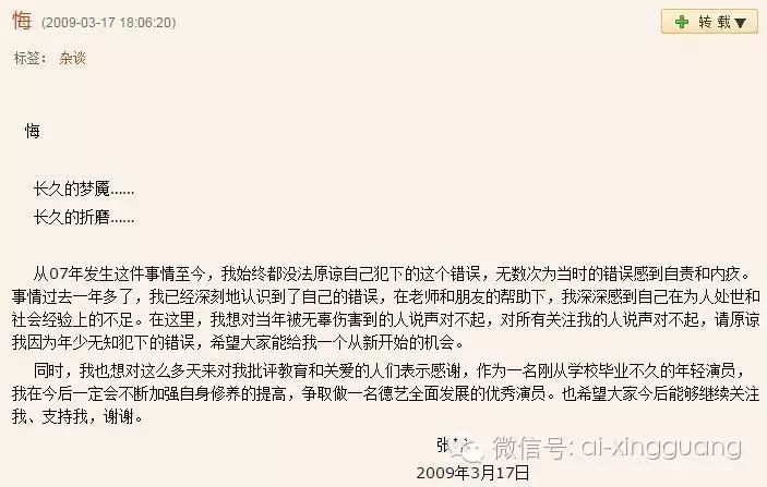 张翰道歉微博