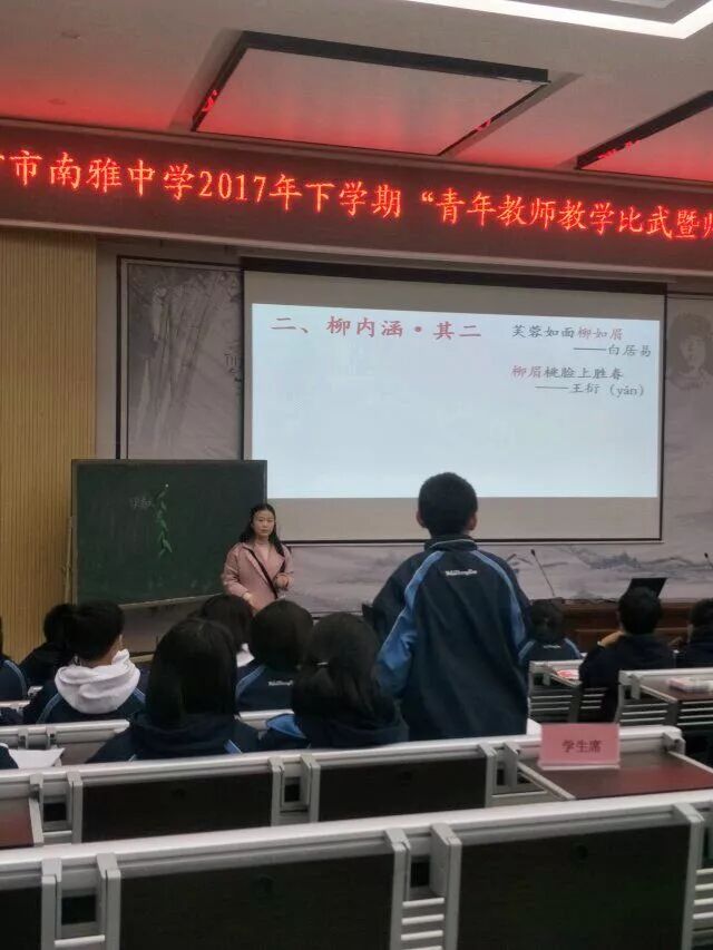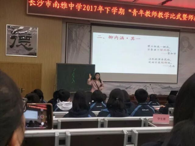 刘一莹老师作为雅境中学的青年教师代表与南雅共同体的13位教师同台竞技。全场评委以及在场师生被刘老师精心的教学设计、高超的教学技巧所折服,又被她火热的激情和独有的人格魅力所感染,课堂特色纷呈,高潮迭起,获得了课堂教学比赛最高分。