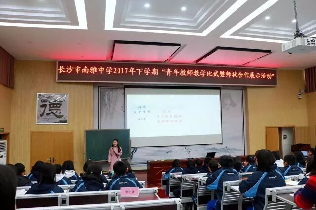 为充分发挥名师的示范引领作用,进一步促进青年教师专业成长,2017年12月7日下午,“长沙市南雅中学2017年下学期青年教师教学比武暨师徒合作展示活动”在南雅中学阶梯教室隆重举行。南雅共同体的多位领导、多种学科的任课教师共同参与。