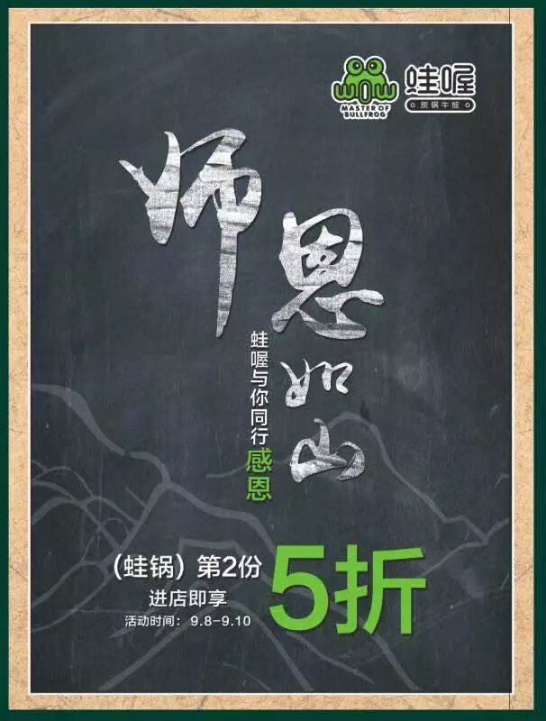 | 2001 | 第二锅半价 时间:9.8-9.10 | 蛙喔 |