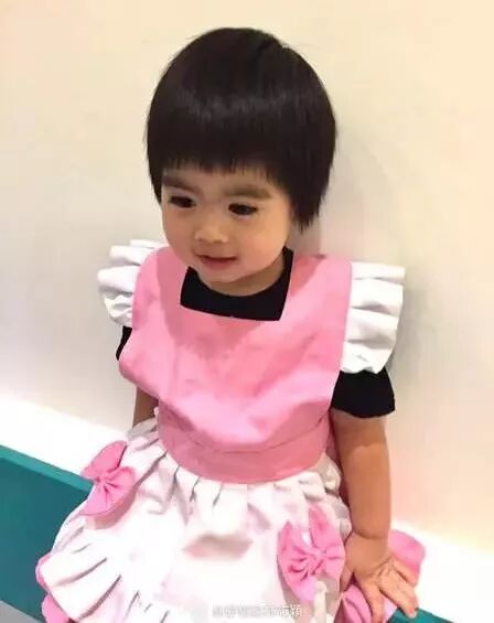 Kyson用手压着裙边,低头浅笑,坐姿“淑女迷人”。圆溜溜的眼睛和长长的睫毛,看上去就像个小女孩般,而眉毛仿佛是蜡笔小新同款,可爱俏皮真是惹人喜爱。不过这次女仆装扮,是不是暴露了小志想要女儿的心思呢?