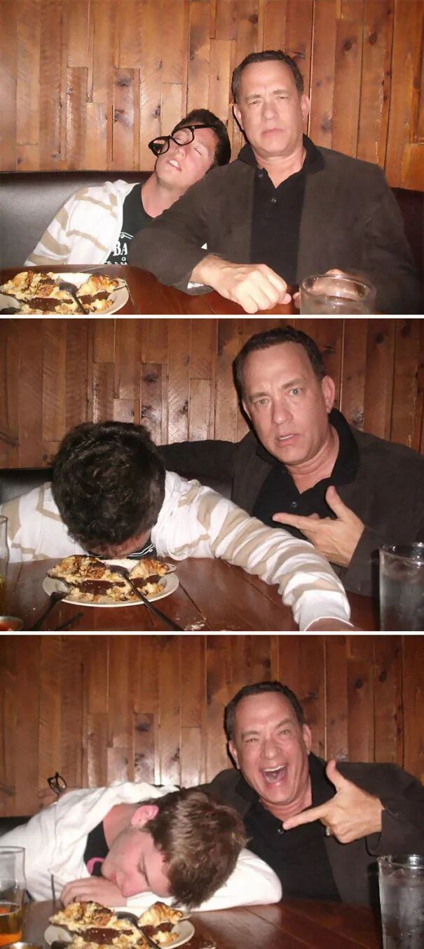 6. 汤姆·汉克斯好像很喜欢跟喝多了的粉丝拍照