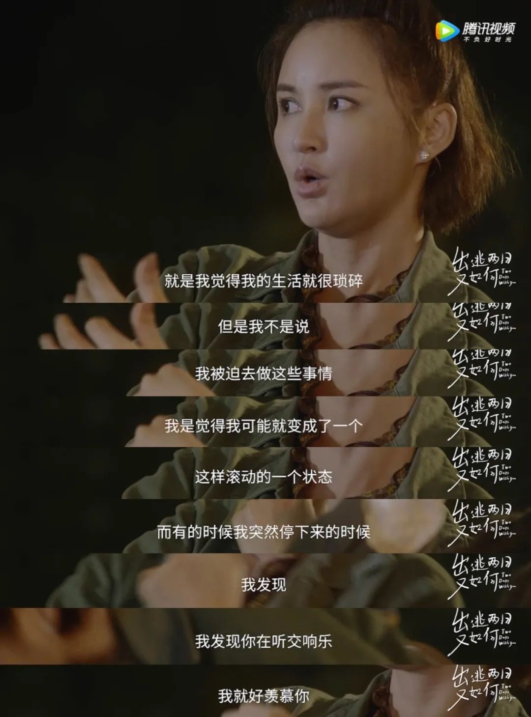 她对袁弘说:“我很羡慕你,你更像是一个在生活的人,而我已经没那么多热情去追寻诗和远方。”