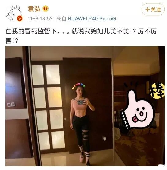 给张歆艺买健身器材,督促健身,前阵子刚微博转发妻子腹肌照,直接夸“我媳妇儿厉不厉害?!”