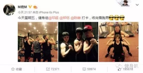 一向靠颜值取胜的人气偶像鹿晗,29日在微博晒照大秀肌肉,跑男团成员邓超、郑恺等纷纷入镜,排队凹造型:“今天健身组打卡,练完看跑男。”