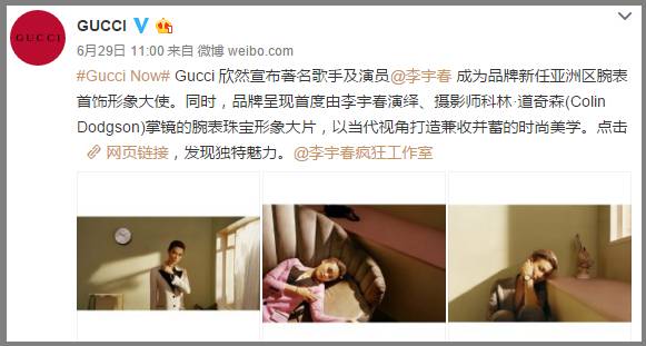 李宇春的时尚资源真是开挂了一样……前段时间才刚刚当上了Gucci的亚洲区腕表与首饰形象大使:
