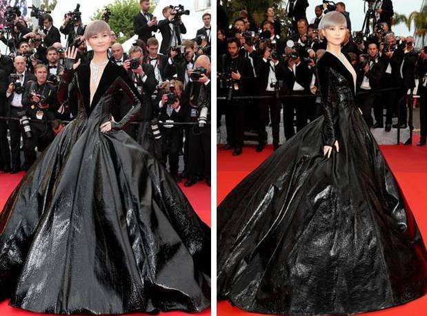 Versace也和春春关系很好,常常给她最新的款式亮相重要场合,比如在2015年amfAR慈善晚宴上,李宇春穿的就是Atelier Versace 2015春夏高级定制: