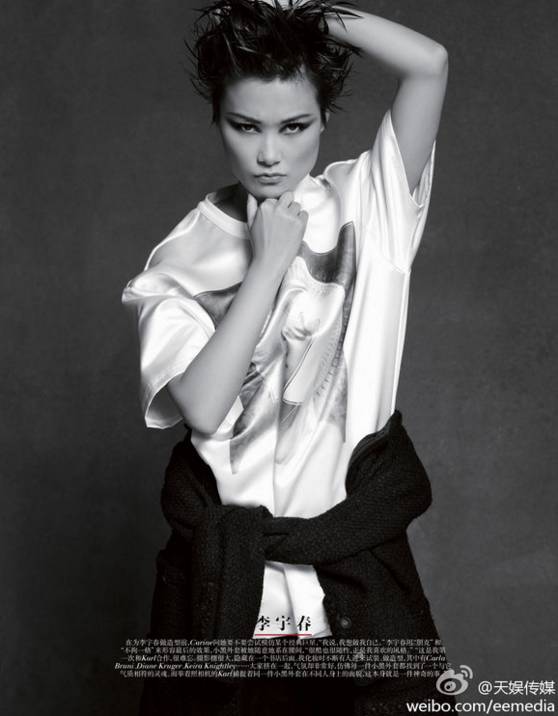 去年的《Harper'sBazaar》九月刊,Chanel又邀请李宇春来拍大片,致敬时尚偶像Coco Chanel,这说明了Chanel觉得春春是符合Coco Chanel的独立,优雅,勇敢和先锋气质的。