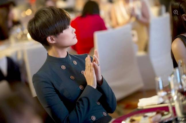 穿Versace的套装出席APEC女性领袖峰会颁奖仪式,获APEC最杰出女性奖: