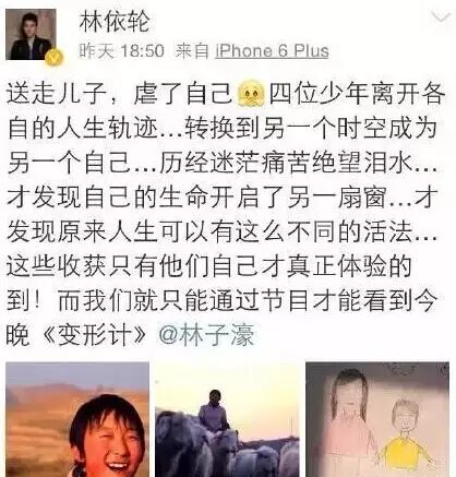 这个节目旨在拯救城市不良青年、帮扶农村贫苦儿童。这次,林依轮的儿子林子濠就是被当做城市不良青年送去甘肃“改造”。