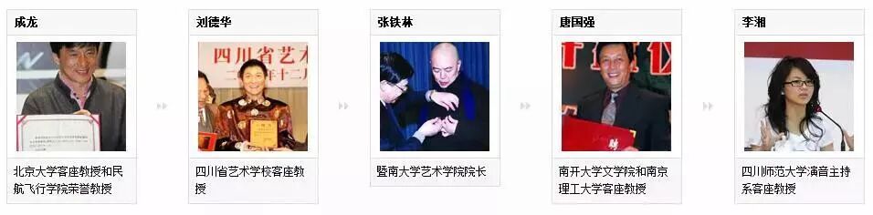而成龙、刘德华、张铁林、唐国强、李湘这些人都已经成了院长教授!