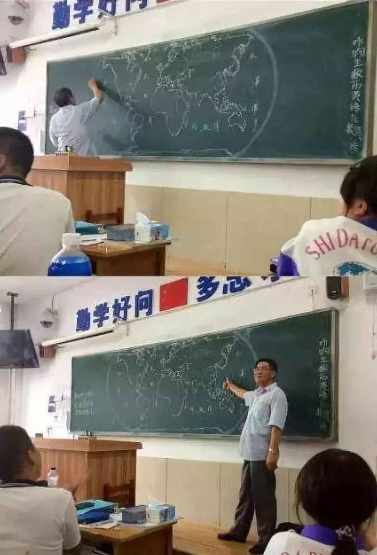 当然老师最重要的还是要有才气,这些老师有料君也能给大家信手拈来!这位徒手画世界地图的东北师大附中地理老师赵登明↓