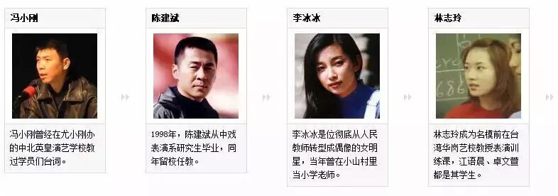 除了以上几位是学生票选出来受欢迎的明星教师,还有冯小刚、陈建斌、李冰冰、林志玲等都曾担任过老师。