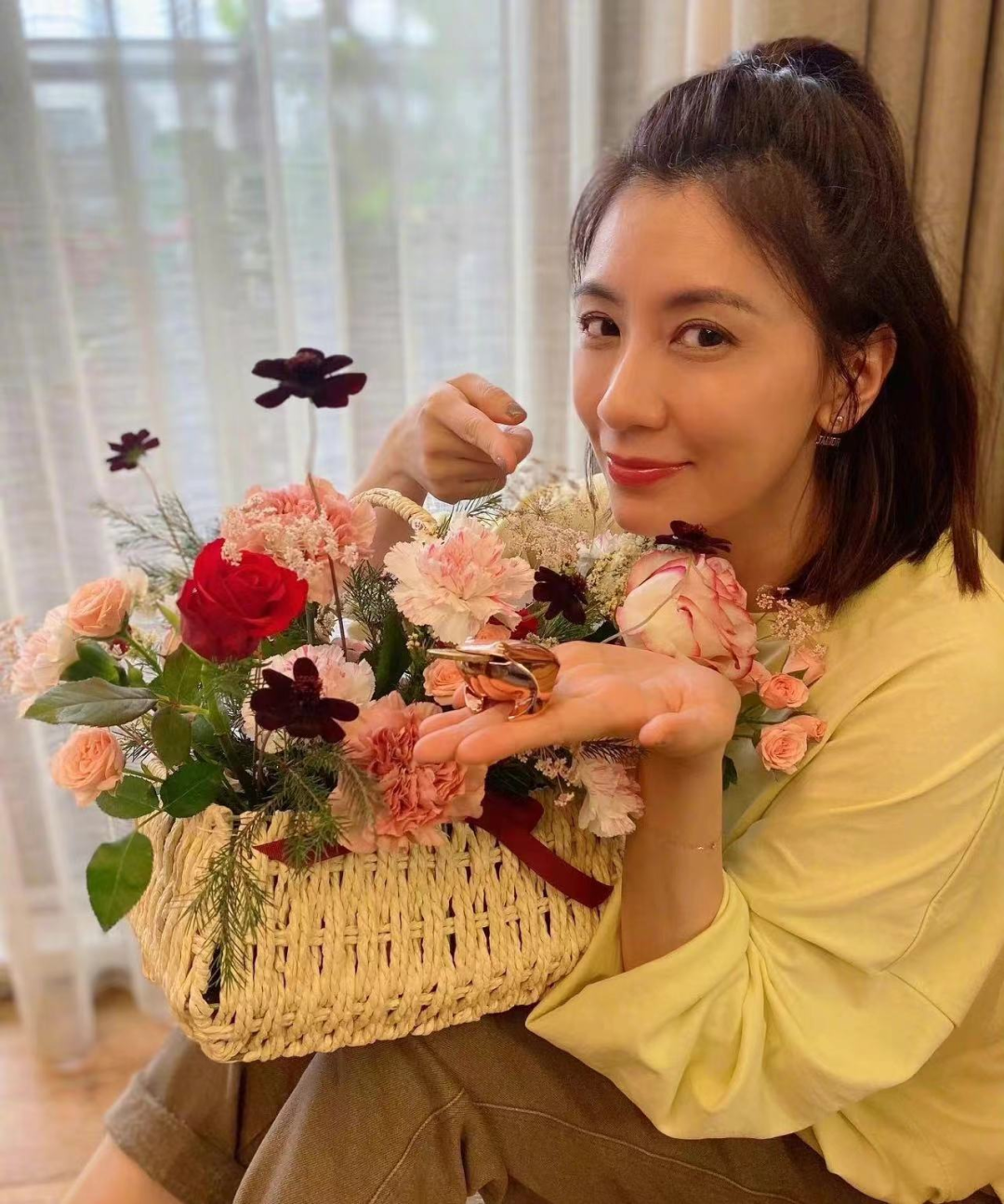 镜头里,贾静雯留着一头利落的短发,戴着发卡,俏皮捂脸地模样,充满青春气息,让人难以相信她已经48岁。