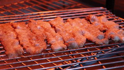 选取高品质的五花肉细心调制,然后上架烤,油分经过高温被析出,滋滋作响~