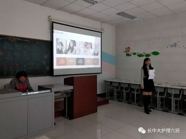 由樊梦雨放映PPT,周瑛淇为我们讲解他们小组人员的大学规划