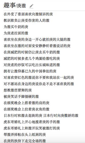 “庚澈”则没有什么特别起源,只因为两个人真的关系很好,百科上列出的粉红小趣事都有一大堆。