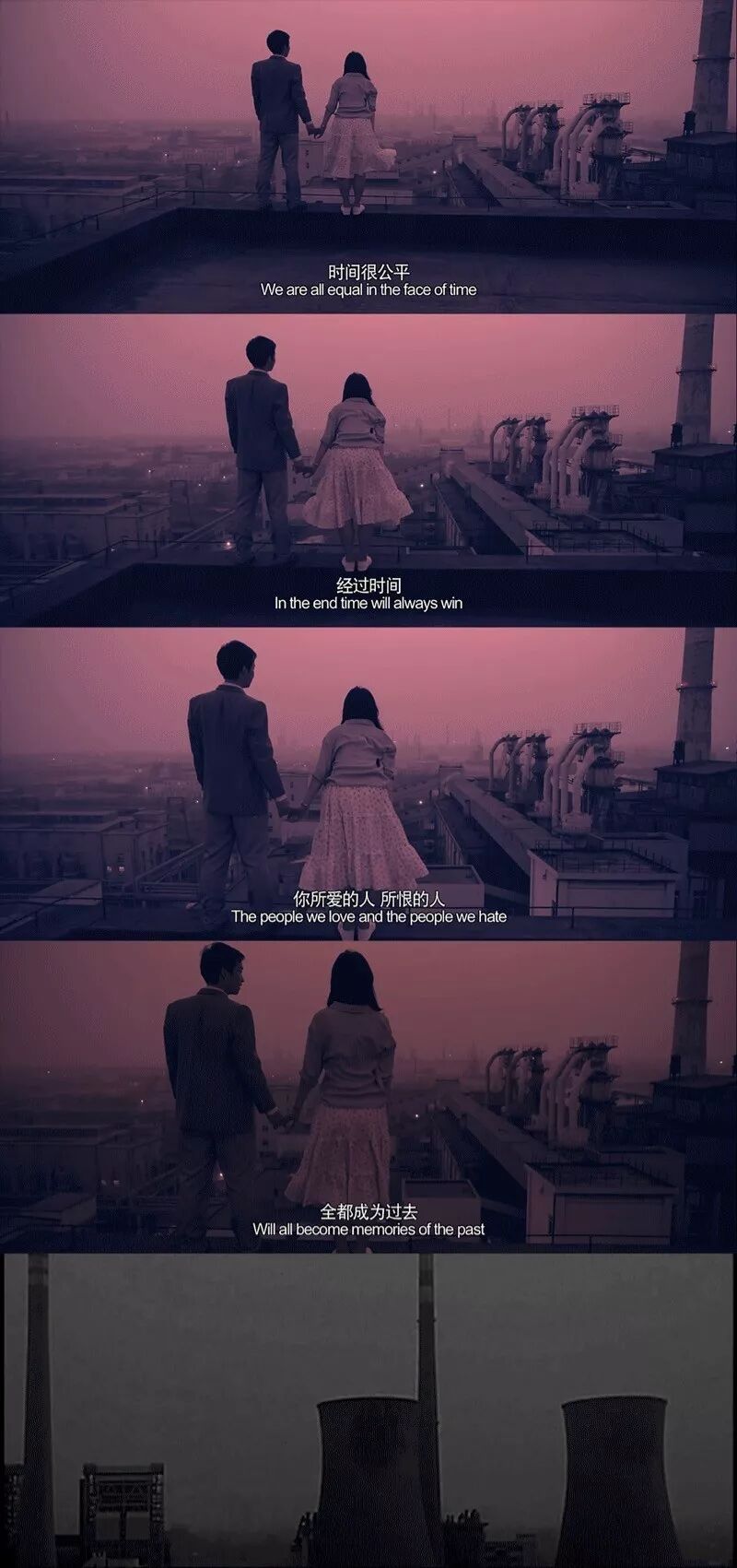 三年前,在青岛碱厂拍摄《少年巴比伦》的时候,她总迷恋看工厂里那一个个冒着滚滚白烟的烟囱头,也曾经爬上烟囱头俯瞰整个工厂。她在那一刻就知道了,这里即将消亡,终将消亡。她觉得那白烟就像自己,「漫无目的的白烟徐徐展开,就像我们始终忙碌始终漂泊,却不知道未来会走向哪里,然而依然固执的坚持着一个叫理想的词语。」
