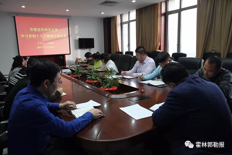 为认真学习贯彻党的十九大精神,切实把机关广大党员的思想和行动统一到党的十九大精神上来,推动“两学一做”学习教育常态化制度化取得实效,11月14日,市委常委、宣传部部长王瑞欣为市委宣传部党支部全体党员上了一堂题为“不忘初心,牢记使命,做合格党员”的党课,带领党员同志学习党的十九大精神,将党的十九大精神不断引向深入,切实贯彻到实际工作中。