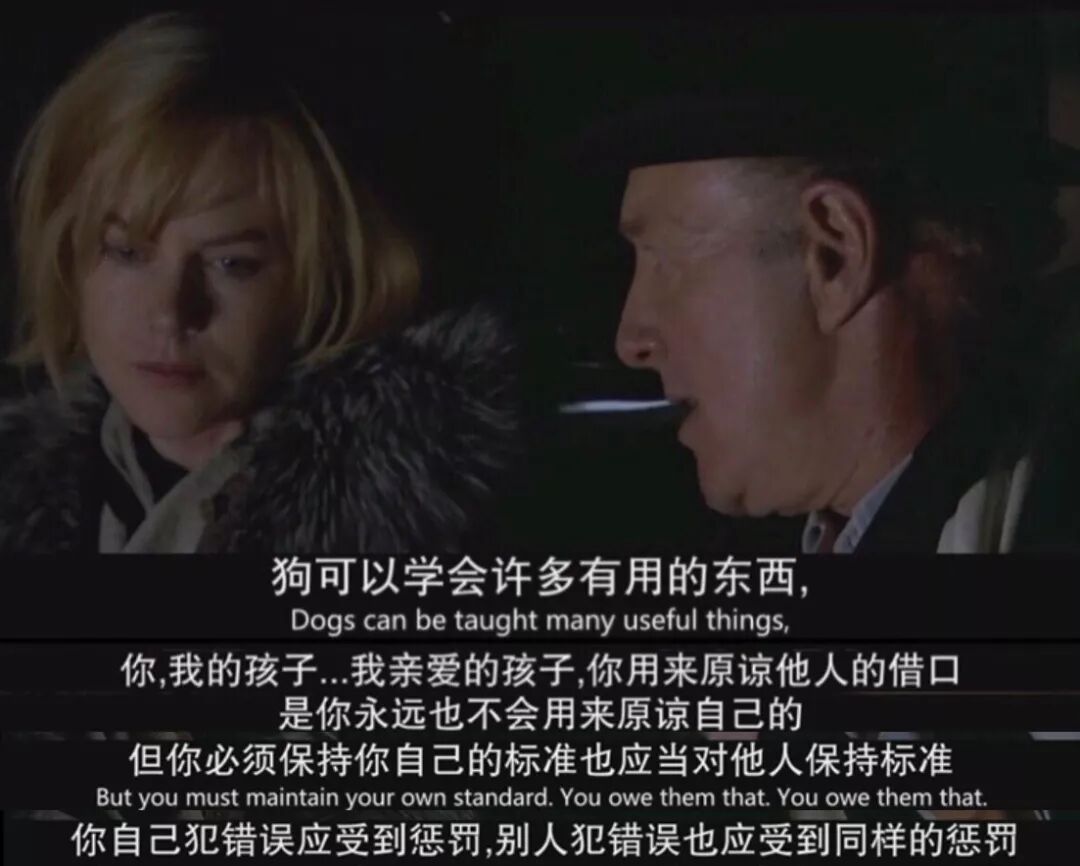 电影《狗镇》中,在血洗欺凌女主的小镇前,黑帮大佬这样教育自己的女儿。