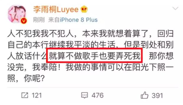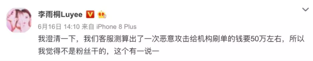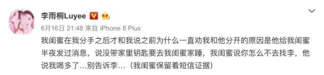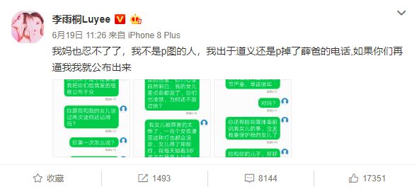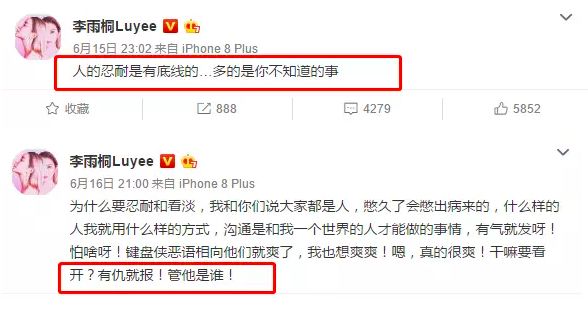 从6月15日到昨天晚上,李雨桐就连刷几十条微博,中心思想就是两个字:报仇。