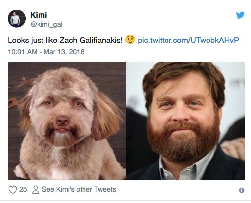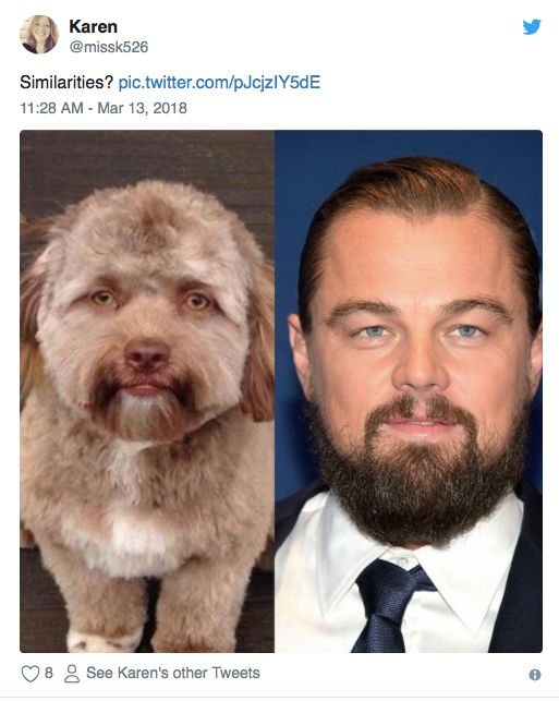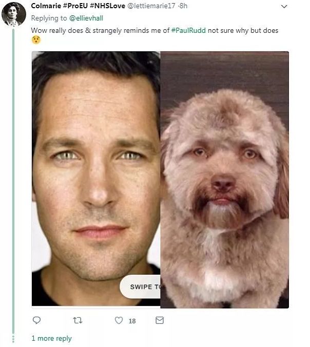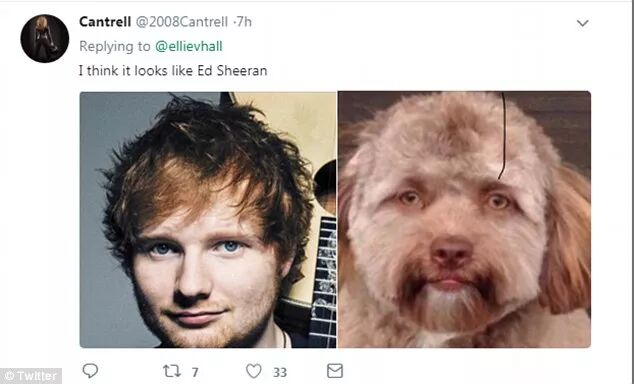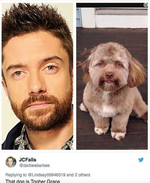 大概是修毛后效果太显著了,Yogi忍不住把照片分享到网络上,调侃自己的狗狗长了张人脸