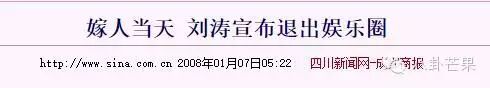 然而让粉丝痛心的是,2008年1月,刘涛突然在婚礼上面宣布退出娱乐圈,专心相夫教子。