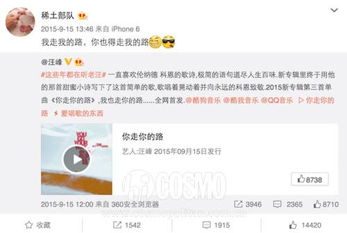 ▲在汪峰发布新歌以及子怡夺得金马影后的关键时刻,两人都是第一时间送上祝福。这表白也是声势浩大,一King一Queen的动情告白真是甜煞众人。
