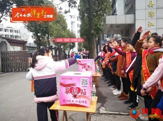 5元、10元、50元、100元、500元……2月25日中午,今日女报谭里和工作室记者在漳江小学门口看到,校门口笔直地站着10余位同学,他们统一佩带着238班爱心募捐的绶带,路过的学生、爱心人士纷纷向门口的募捐箱内或多或少奉献自己的一点爱心。