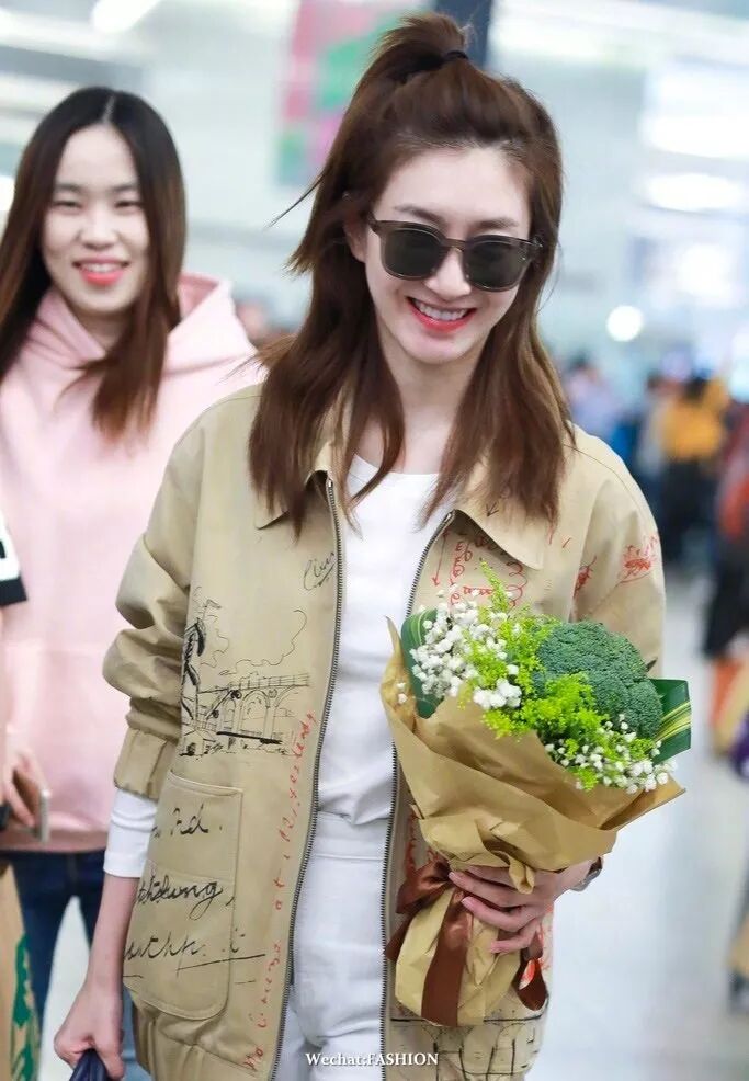 江疏影这身Look以白衣白裤“打底”,Burberry的涂鸦字母印花外套做主角,脚踩Onitsuka Tiger运动鞋,搭配随性不随意,驼+白色的组合很春天很清新素雅,江江收到粉丝送的花,不过是西兰花额,炒了吃呗~