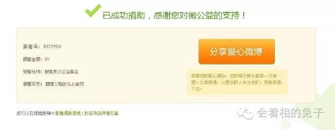 第629个项目,感谢@乔见wuliYX简直碉堡了 的善心。20块已捐出,希望杨玉涵早日康复,勤做善事,福虽未至祸已远离。(有图有真相,贪污上天。)