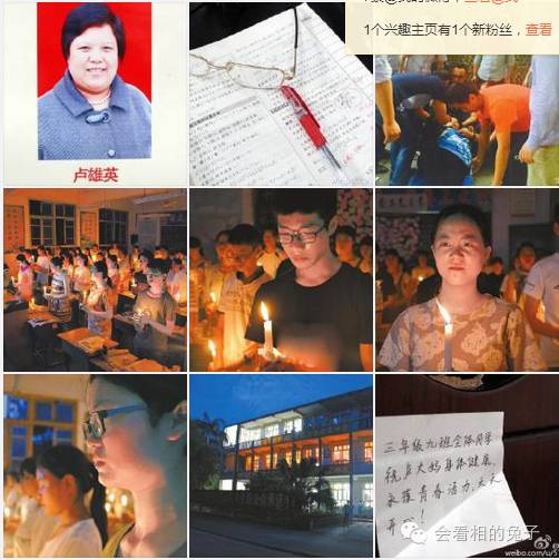 【#老师带病上课病逝# 高考后学生点亮烛光忆恩师】高考前,四川乐山清溪高中的高三数学老师卢雄英生病了,但她边打点滴边上课;5月26日,51岁卢雄英突发脑溢血去世。6月8日,清溪高中高三102名学生手捧蜡烛流下泪水,最后一堂课祭奠卢老师:“我们已完成高考,您在天堂可以安息了。”卢老师走好