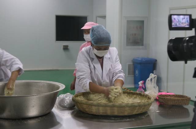 比赛从中午1点开始,51位选手分为三组,依次进行比赛。妇女姐妹们端着自己带来的盆、簸箕、筛子等工具,排队经过了更衣、除尘、消毒等严格的程序进入比赛场地。