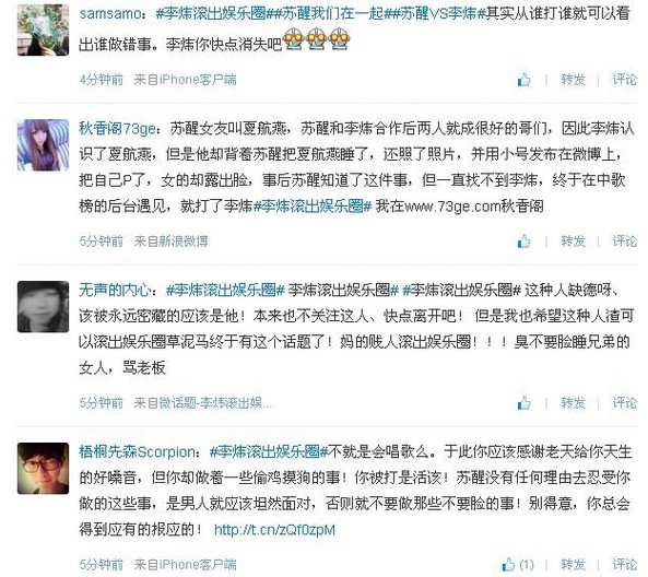 作为2013年的开年大戏,苏醒跟李炜也创造了微博热门话题,#XX滚粗娱乐圈#