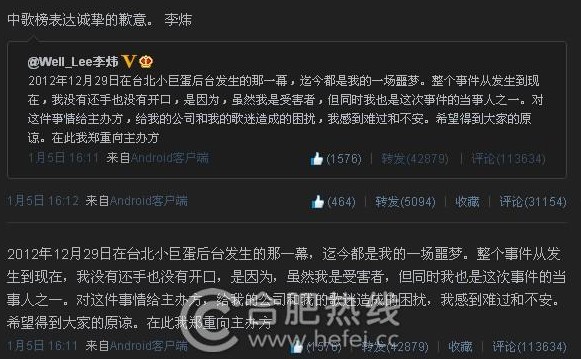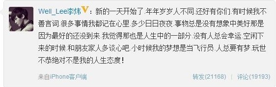 翌日,被打的李炜也发微博了。