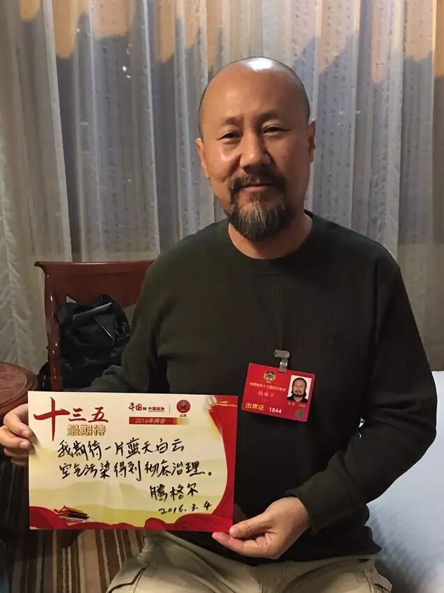 其实,在以往的政协会议中,作为全国政协少数民族界别委员,腾格尔关注的领域还有很多,内容涉及生态环境保护、动物保护、版权保护等诸多方面。提及“十三五”最期待看到的是什么,腾格尔的期待和很多普通大众的期待一样,“期待看到一片蓝天白云,空气污染得到彻底治理。”