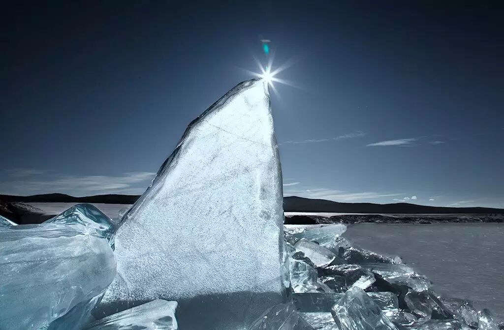 通常的冰无色透明,只有形成了千万年的冰川冰,由于致密坚硬、气泡微小,导致波长较短的蓝光被散射而呈蓝色。但是在贝加尔湖,因为水质特别纯净,湖水的能见度可达40多米,每年冰封期都会形成静谧的蓝冰。