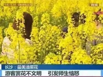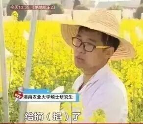 湖南农业大学油菜花实验田遭游客洗劫,下图小哥的实验花株被摘,或影响其明年毕业。瞧这位小哥的表情,苦逼得有点萌啊!